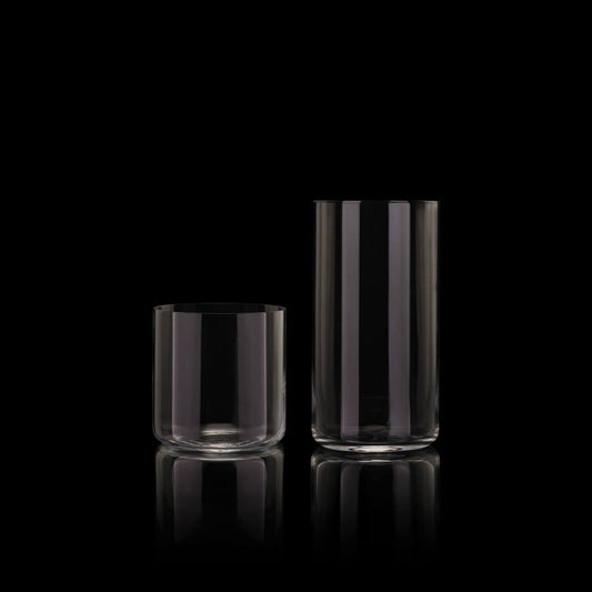The Tall Glasses nest neatly into the Short Glasses for seamless, space-saving storage.